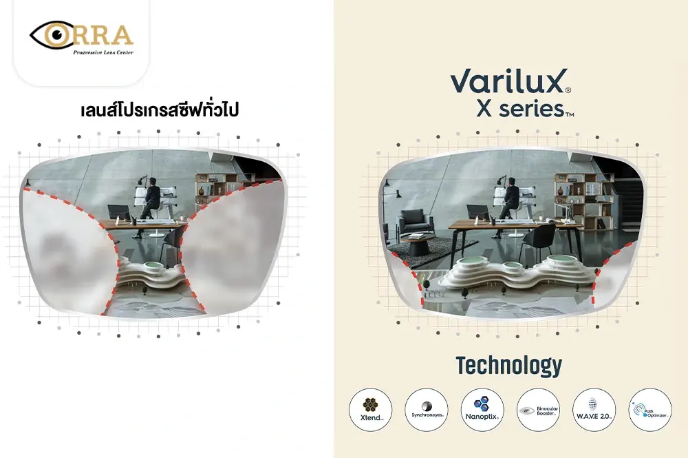 - รุ่น Varilux X Series เป็นเลนส์โปรเกรสซีฟที่ดีที่สุดของ Essilor มีจุดเด่นที่การลดการก้มเงยของศรีษะเพื่อหามุมมองที่ถูกตำแหน่ง มองเห็นภาพระยะช่วงแขนชัดเจนหลายตำแหน่งจณะศรีษะไม่เคลื่อนไหว มีราคาเริ่มต้นที่ 26,160 บาท